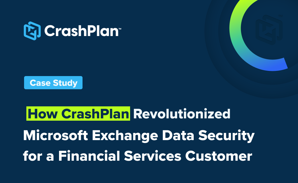 This financial services customer, who relies heavily on Microsoft 365 for email communication, faced some security concerns. CrashPlan’s granular recovery options for swift restoration of critical data, even if the Microsoft tenant is compromised, is just one of the reasons they chose CrashPlan.